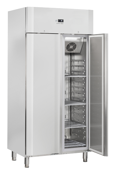 A clean and elegant design with a regular shape for the panel and doors and a digital controller with independent main switch. The QR 58 model is a perfect combination of technological improvements and manufacturing experience, with self-closing doors to avoid energy waste, grid guides to help in the cleaning process and both to save space inside the cabinet and to allow a higher weight on the 8 shelves GN1/1 fitted as standard. It also has an eco-friendly gas R290 and 70mm insulation foam on each side to ensure optimum energy-saving. To complete the high-end features list, it comes with internal LED lights and locks fitted as standard and height-adjustable feet (from 75mm to 90mm).