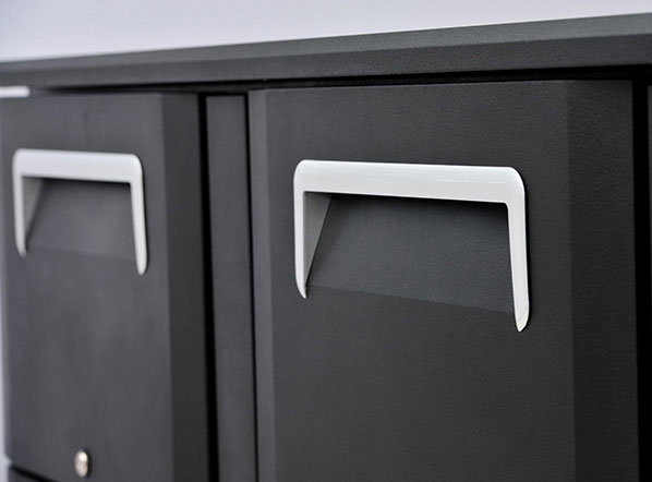 Schwarz pulverbeschichteter Zinkstahl außen, weiß beschichteter Stahl innen