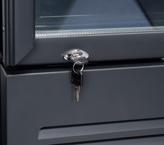 Beheizte Glastür mit dreifach gehärtetem Sicherheitsglas und Argongas