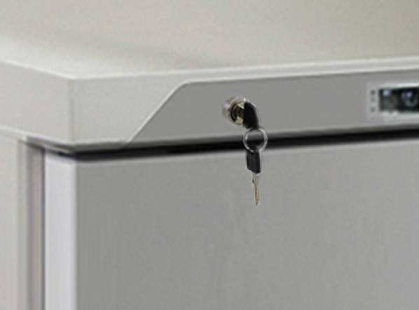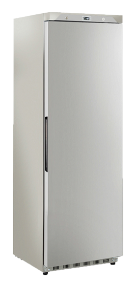 400 liters solid door ABS cabinet comes in stainless-steel finish and internally thermoformed, fitted with a digital thermostat, self closing and reversible door, lock and main switch, handle long door profile, 4 adjustable shelves + 1 shelf on the bottom side, assembled with 2 adjustable feet + 2 rollers at the back.