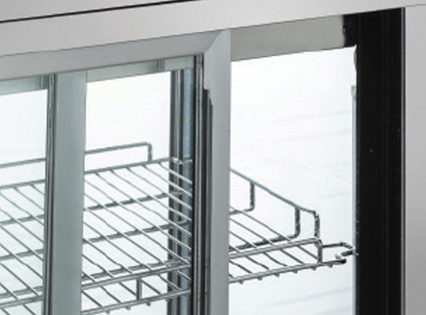 A countertop showcase with flat glass and steel frame and base, fitted with LED lights anti-condensation double layer glass, rear sliding doors and adjustable chromed shelves. The model RC 769 is specifically designed for the exposure of any kind of food which deserves a prominent place on your counter.