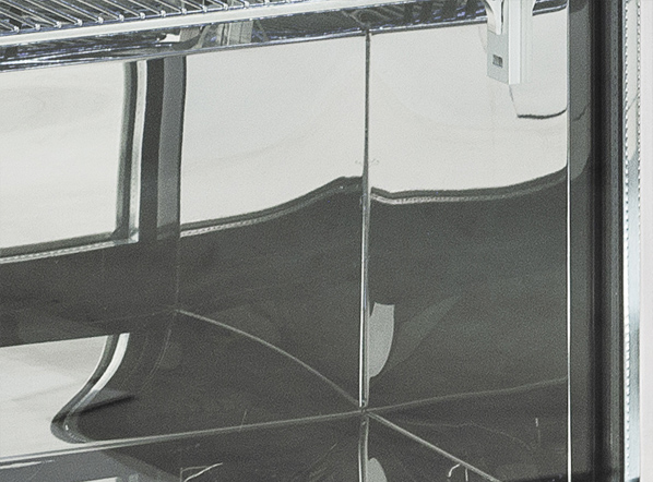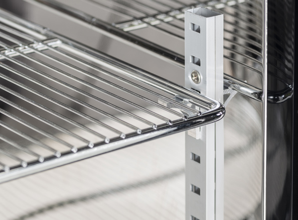 The BBA 148 model has been designed to be a modern, reliable and versatile back bar, perfect to maintain at the right temperature and to display any kind of bottles and cans. With a capacity of 138L, finished in black coated steel for the exterior and in mirror stainless steel for the inner side, this product is fitted with 1 hinged glass door with stainless steel frame, 2 adjustable chromed shelves, self-closing door, lock, inner horizontal LED light, digital thermostat, and toughened safety tempered glass with steel frame.
