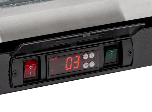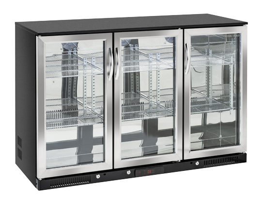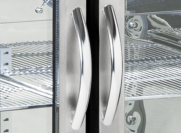 The BBA 348 model has been designed to be a modern, reliable and versatile back bar, perfect to maintain at the right temperature and to display any kind of bottles and cans. With a capacity of 302L, finished in black coated steel for the exterior and in mirror stainless steel for the inner side, this product is fitted with 3 hinged glass doors with stainless steel frame, 6 adjustable chromed shelves, self-closing door, lock, inner horizontal LED light, digital thermostat, and toughened safety tempered glass with steel frame.