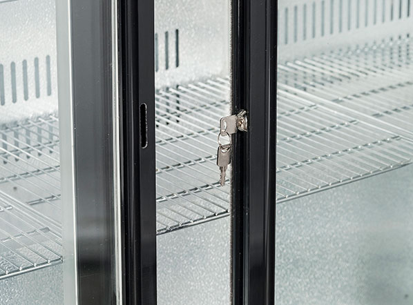 The BBC 386S model has been designed to be a reliable and versatile back bar, perfect to maintain at the right temperature and to display any kind of bottles and cans. With a capacity of 302L and 860 mm height, finished in aluminum for the inner side and black coated steel for the exterior, this product is fitted with 3 sliding glass doors, 6 adjustable chromed shelves, self-closing door, lock, inner horizontal LED light digital thermostat and toughened safety tempered glass.