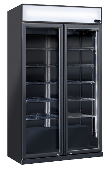 The DC 1050CB model has been designed to be a modern, reliable and versatile drink cooler, perfect to maintain at the right temperature and to display any kind of bottles and cans, and customizable with promotional messages on the body and on the advertising illuminated panel. With a capacity of 805L, finished in black and with 2 hinged doors, this product is fitted with 10 adjustable shelves, digital thermostat, lock, self-closing door, LED lights, independent switch for internal light and canopy, 4 wheels for easy positioning + 2 anti-tilted feet and anti-condensation double layer glass.