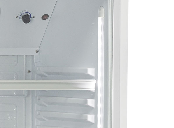 The DC 340 model has been designed to be a reliable and versatile drink cooler. It is ideal to display and maintain any kind of bottles and cans at the right temperature. It is also customizable with promotional messages. With a capacity of 360L and finished in white, this product is fitted with 5 adjustable shelves, self-closing door, lock, inner vertical LED light with independent switch, self-closing door and toughened safety tempered glass.