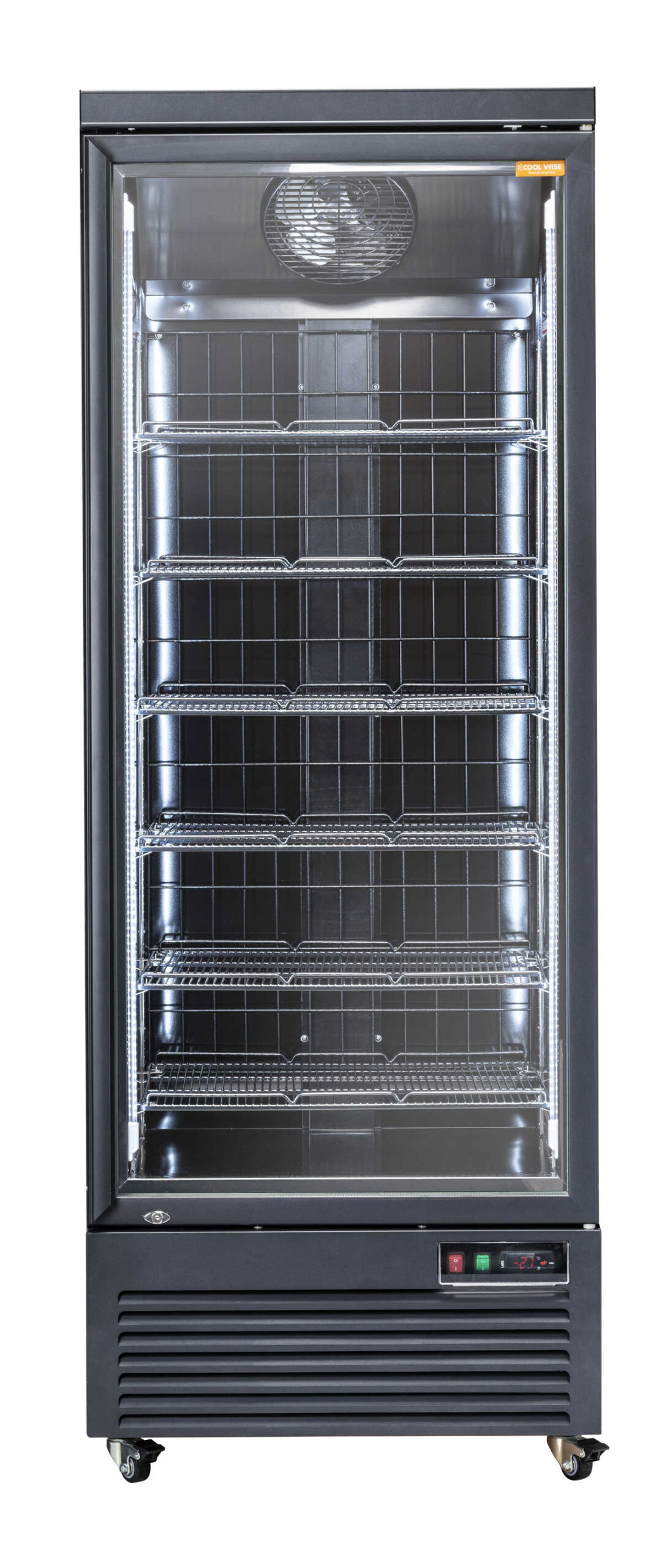 A clean-appearance upright freezer with one glass door and 560L capacity. It comes in black and with an inner vertical LED light with independent switch. Fitted with a heated glass door with double safety tempered glass, ventilated cooling system, 6 adjustable shelves, lock, self-closing door, 4 wheels for easy positioning and digital thermostat display. The RFG 750B model has been designed to be used in multiple ways, always guaranteeing correct food storage for proper display and appreciation of the products inside.