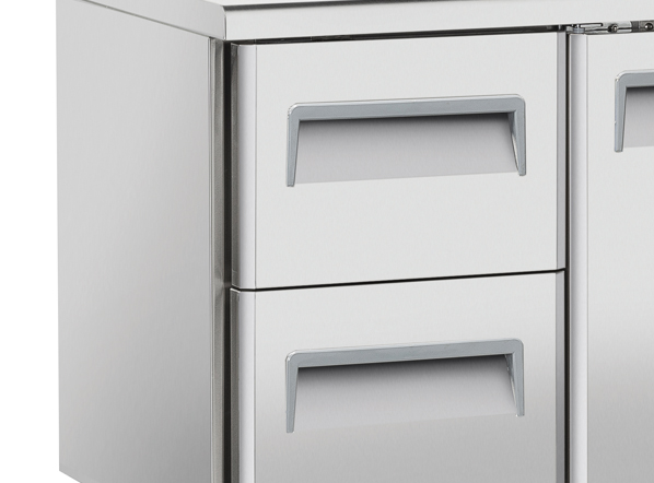 With a modern appearance, a new door design, rounded edges at the top and a digital display, the SR 3100 model is the perfect combination of efficiency and reliability. It has 600 mm of depth, 3 doors or drawers optionally available and 2 adjustable shelves 325x410mm on each door. It was designed with focus on environmental sustainability, being equipped with R290 natural gas, 60 mm insulation foaming on each side, doors with internal embossing for better sealing and a self-closing door to avoid energy waste. To complete the high-end features list, it comes with height-adjustable feet (from 145mm to 185mm) and self closing doors.