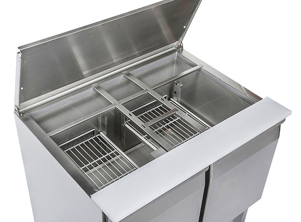 Clean and essential appearance, this model with open top and stainless-steel protection is perfect to save space and offer a refrigerated workstation in any professional kitchen. The CR 92A is a perfect example of efficiency, two doors, an adjustable shelf GN1/1 for each door, more space for the pans, a digital thermostat, an engine room at the bottom, an easily removable condenser filter for smooth maintenance and cleaning and a sliding engine which is easy to pull out for manageable after-sales servicing.