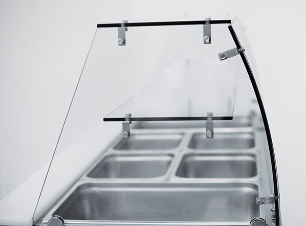 Clean and essential appearance, this model with open top and glass protection is perfect to save space and offer a refrigerated workstation in any professional kitchen. The CRQ 90A is a perfect example of efficiency, two doors, an adjustable shelf GN1/1 for each door, a digital thermostat, an engine room at the bottom, an easily removable condenser filter for smooth maintenance and cleaning and a sliding engine which is easy to pull out for manageable after-sales servicing.