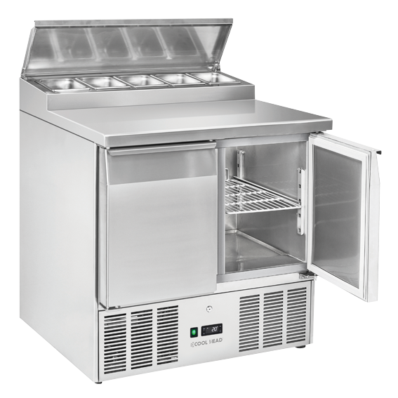 Clean and essential appearance, this model with stainless steel top and an embedded space for 5 GN 1/6 pans (pans not included) is perfect to save space and offer a refrigerated workstation in any professional kitchen. The CRS 90A is a perfect example of efficiency, two doors, an adjustable shelf GN1/1 for each door, a digital thermostat, an engine room at the bottom, an easily removable condenser filter for smooth maintenance and cleaning and a sliding engine which is easy to pull out for manageable after-sales servicing.