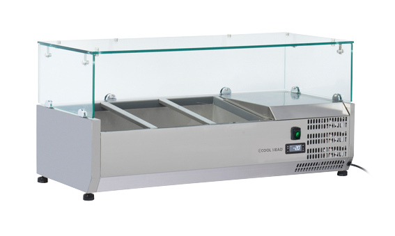 With a clean appearance comprised of all necessities, this model with a flat glass top fits perfectly with any professional prep station. With a width of 1000 mm, the VRX 10/395 is suitable for 2 GN1/3 + 1 GN1/2 pans (not included), offers a digital thermostat and adjustable feet as standard and high stainless-steel feet (180-210 mm) as optional.