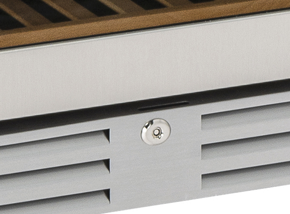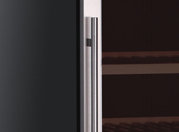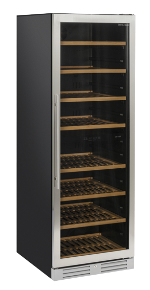 The CW 410DT model is a modern double temperature wine cellar suitable to contain up to 151 bottles and is designed and manufactured with the greatest care and attention in order to achieve advanced performances and high-quality standards. This professional wine cellar is equipped with 8 wooden bottle holder racks, a blue LED digital display, an interior blue LED light, a reversible door with a vertical cylindrical handle, a lock, a tinted glass door for wine protection and an opening door alarm.